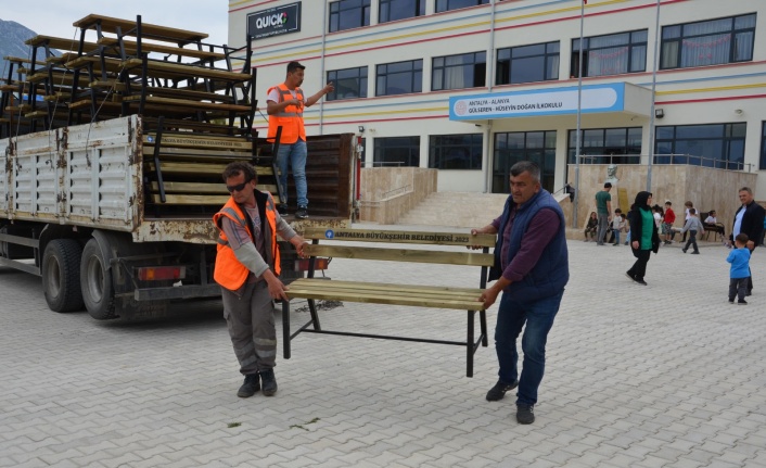bank ve piknik masası verdi. Antalya Büyükşehir Belediyesi, eğitim ve dini kurumların taleplerini de yerine getiriyor.