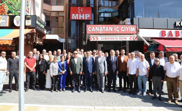 MHP Alanya'dan yapılan paylaşımda şu ifadelere yer verildi: 'Önceki dönem Dışişleri Bakanımız,Antalya Milletvekilimiz Sayın Mevlüt ÇAVUŞOĞLU ve Cumhur İttifakı ortağımız Ak Parti Alanya İlçe Başkanı Mehmet Şarani TAVLI,Önceki dönem İlçe Başkanı Mustafa TOKLU,28.Dönem Mv.Adayı Kuddusi MÜFTÜOĞLU ile birlikte İlçe Teşkilatımıza hayırlı olsun ziyaretinde bulundular.