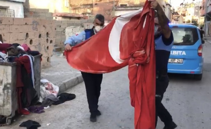 Mersin'in merkez Akdeniz ilçe Belediyesine bağlı zabıta ekipleri, devriye sırasında çöpe atılan büyük bir Türk bayrağını bulunduğu yerden çıkardı. Türk bayrağını temizleyip, katlayıp, öperek arabaya koyan ekipler, bölgede araştırma yaparak bayrağı çöpe atanı bulmaya çalıştı.