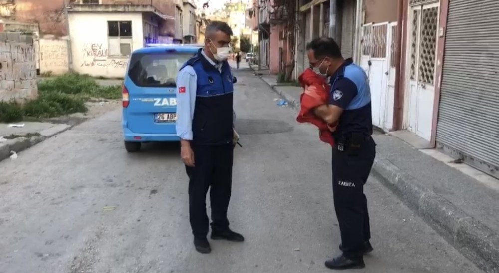 Edinilen bilgiye göre, Zabıta Müdürlüğü ekipleri, ilçeye bağlı Barış Mahallesi 128. Cadde üzerinde devriye attığı sırada, bir çöp tenekesi içine buruşturulmuş şekilde atılmış Türk bayrağı olduğunu fark etti. Hemen durarak çöpün içindeki büyük Türk bayrağını çıkaran ekipler, bayrağı önce temizlerken ardından katlayıp, öperek arabaya koydu. Çöpün içinde başka bayrak olup olmadığını da kontrol eden ekipler, uzun süre bölgede bayrağı çöpe atanı bulmaya çalıştı. Çevrede yapılan incelemede bayrağı çöpe kimin attığı belirlenemezken, bayrak tamamen temizlenip, asılmak üzere belediyeye götürüldü.