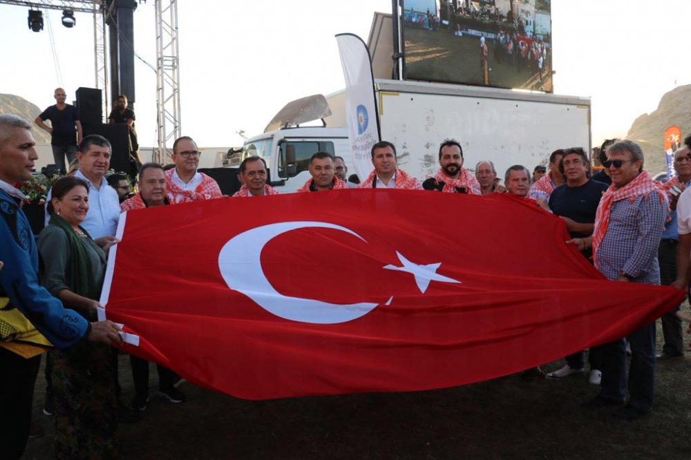 THK Alanya Şube Başkanı Antalya Büyükşehir Belediyesi Alanya Aşevi Müdürü Tokar Yaylası eski ağası Emine Keyaoğlu, ağalığını kutlamak üzere Özgen'e dev bir Türk Bayrağı hediye etti. Böcek, Yücel, Özgen ve Keyaoğlu bayrağı hep birlikte açtılar.