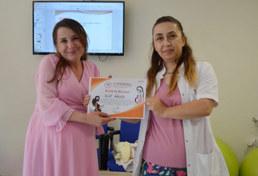 Alanya Eğitim ve Araştırma Hastanesi bünyesinde hizmet veren Gebe Okulunda, 4 hafta boyunca derslere katılan ve bebek bakımı konusunda uygulamalı eğitimlerini tamamlayan 25 anne adayına düzenlenen törenle birlikte katılım belgeleri taktim edildi. Düzenlenen organizasyon Başhekim Vekili Uzm. Dr. Alper Öztürk ve ekibi, Gebe Okulu Sorumlu Hekimi Kadın Hastalıkları ve Doğum Uzmanı Op. Dr. Rahşan Eyüp Doğan, Gebe Bilgilendirme Sınıfı Sorumlu Ebesi Ayşe Başar ve anne adaylarının katılımıyla gerçekleşti. Bilinçli ebeveynler yetiştirerek topluma katkı sağlamayı hedeflediklerini vurgulayan Op. Dr. Rahşan Eyüp Doğan,” Okulumuzda; anne adaylarımızın doğum öncesi, doğum ve doğum sonrası dönemle ilgili konularda bilgi sahibi olmasını, bilinçli doğum yapmalarını, normal doğum eylemi, ağrı yönetimi ve yeni rollerini benimsemelerini, bilgi ve beceri kazanmalarını, anne adaylarının bebek bakımı konusunda bilinçlendirmek ve sağlıklı bebeklerin yetiştirilmesini hedefliyoruz. Gebelikte 21. Haftasını dolduran tüm anne adaylarımız okulumuza katılabilirler. Anne adaylarımız eğitimciler tarafından 4 hafta boyunca sözel, görsel, uygulamalı, maket üzerinde eğitimlerin yanı sıra gebe pilatesi, gebe yogası ve eşli eğitimlere tabii tutulmaktadır. Eğitim sonunda gerekli koşulları sağlayan katılımcılarımıza belgeleri taktim ederek okulumuzdan mezun ediyoruz. Güvenli, kaliteli gebelik izlemi ile birlikte doğum hizmeti almak isteyen anne adaylarımızı okulumuza bekleriz” diye konuştu.