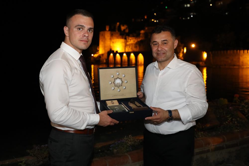 Yemeğin ardından hediye değişim programı yapıldı. Başkan Yücel misafirlere 800. yıl şehir anahtarı ve çini tablo hediye ederken, gelen hediyeleri de kabul etti.
