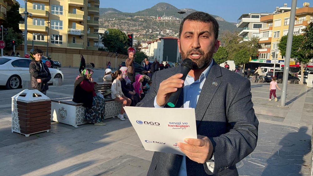 Anadolu Gençlik Derneği (AGD) Alanya Şubesi üyeleri İsveç’te Türkiye'nin Stockholm Büyükelçiliği önünde Kur'an-ı Kerim yakılmasına tepki gösterdi. Hacet Meydanı’nda açıklama yapan AGC üyelerine Saadet İlçe Başkanı Hüseyin Sarıca ile MÜSİAD Alanya Şube Başkanı Mustafa Durusoy da destek verdiler. Açıklamaya bazı vatandaşlar ellerinde Türk bayrakları ve Kur’an-ı Kerim ile katıldı. Meydanda toplananlar adına açıklama yapan AGD Alanya Şubesi Başkanı Sıddık Uyar, İslam dininin tüm insanlığın saadet ve selameti için insanlara hitap ettiğini söyledi. İslam düşmanlığı yapan şer odaklarının insanlığın huzurunu ve bir arada yaşama kültürünü hedef aldığını ifade eden Uyar, “Kur’an, insanlara iletilen canlı bir hitaptır. Kur’an düşünenlere, aklını kullanabilenlere ithaf edilmiş bir kitaptır.