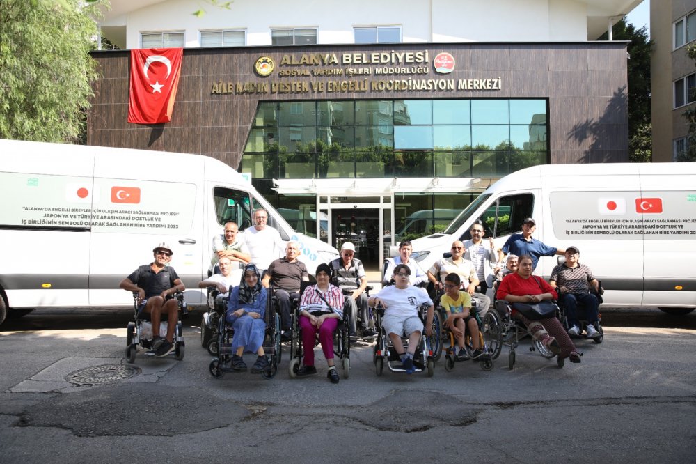 Japonya Büyükelçiliği tarafından açılan Yerel Projelere Hibe Programı’na Alanya Belediyesi tarafından hazırlanan proje ile katılım sağlanmıştı. ‘Alanya’da Engelli Bireyler İçin Ulaşım Aracı Sağlama Projesi’ Japonya Büyükelçiliği tarafından kabul edilerek Alanya Belediyesi’ne 74 bin 281 dolar hibe kazandırılmıştı. Hibe yoluyla 2 adet araç Engelli Koordinasyon Merkezi’nin envanterinde yerini aldı. Araçlar engelli lifti gibi eklentilerle engelli vatandaşların kullanımına uygun hale getirildi.