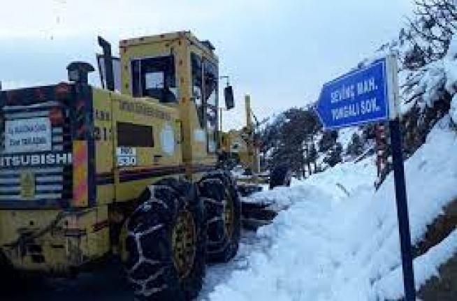 Antalya'yı Konya'ya bağlayan Akseki-Seydişehir karayolunda 1825 rakımlı Alacabel'de karayolları ekipleri kar temizleme çalışmalarını sürdürüyor. Yol kenarında yüksekliği 2 metreyi bulan karlar iş makineleriyle taşınıyor.