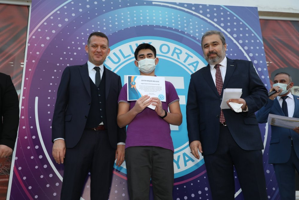 Bayrak ve İstiklal Marşı töreninde Kaymakam Ürkmezer, Milli Eğitim Müdürü Yusuf Yılmaz ve okulu yaptıran hayırsever Tahir Tuluk tarafından; AHENK Projesi kapsamında düzenlenen ALBAB deneme sınavında ve kitap okuma sınavında dereceye giren öğrencilere başarı belgeleri verildi.