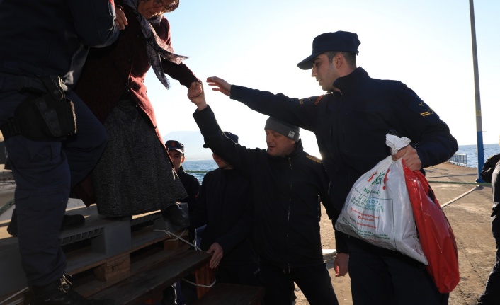 Kaymakam Ürkmezer deniz yoluyla gelen depremzedeleri karşıladı