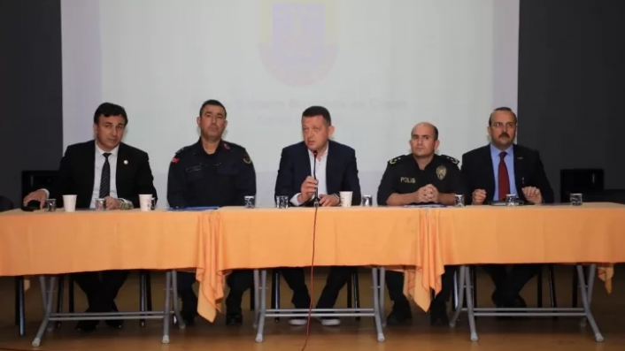 Toplantıda okul müdürleri ve katılımcılara seslenen Kaymakam Ürkmezer, “Öğrencilerimizin huzurlu ve güvenli bir ortamda eğitim görmeleri için hep birlikte çalışıyoruz. Emniyet, jandarma ve zabıta personelleri tarafından okul ve çevrelerinde öğrencilerimizin güvenliği için tüm güvenlik önlemlerini alıyoruz. Okul çevrelerinde kolluk kuvvetlerimiz tarafından uygulamalar yapıyoruz. Okul idarelerinden, öğretmenlerimizden ve okul aile birliklerinden ricamız ise okulun çevrelerine duyarlı olmaları ve okul çevrelerini iyi tanımalarıdır. Herhangi şüphelendikleri bir konu olduğunda bu durumu hemen kolluk kuvvetlerimize bildirmelerini istiyoruz. Öğrencilerimizin güvenli bir okul ortamında eğitim görmelerini sağlamak hepimizin görevi. Emek ve çalışmalarınızdan dolayı hepinize teşekkür ediyorum’’ dedi.