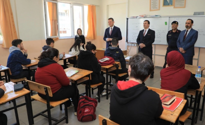 Sınıf ziyaretlerinin ardından öğretmenlerle toplantı yapan Kaymakam Ürkmezer okulun eğitim durumu ve öğrencilerle konuşarak, "Okul ziyaretlerimize devam ediyoruz. Öğrencilerimiz ve öğretmenlerimizle bir araya gelerek destek vermeye çalışıyoruz. Öğrencilerimizin akademik başarıları için yapılan çalışmaların yanı sıra sosyal, kültürel ve sportif anlamda da yapılan çalışmaların çeşitlendirilmelerini istiyoruz. Öğrencilerimiz için yapılabilecek her türlü çalışmalarda okul ve öğretmenlerimize elimizden gelen tüm desteği vermeye hazırız. Diğer bir konu olarak çocuklarımıza zarar verecek herhangi bir şüpheli durum yahut ortam oluştuğunda kolluk kuvvetlerine anında bildirmeniz çok önemli. Okul ve çevrenize duyarlı olmanızı rica ediyoruz. Öğrencilerimizin huzurlu ve güvenli bir ortamda okumaları için hep birlikte çalışacağız. Çalışmalarınızdan dolayı teşekkür ediyorum" dedi. Kaymakam Ürkmezer'e ziyaretinde Milli Eğitim Müdürü Yusuf Yılmaz ve İlçe Jandarma Komutanı Binbaşı Hüseyin Direk eşlik ettiler.