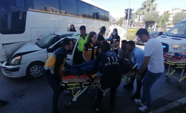 Kaza, Demokrasi Bulvarı üzerindeki köprülü kavşak yan yolda meydana geldi. Edinilen bilgiye göre, Hüseyin Avni Akın Bulvarı istikametine seyir halindeki Yusuf Gökburun’un kullandığı 07 J 74652 plakalı servis otobüsüne, yan yolda Alanya istikametinden Manavgat istikametine seyir halindeki Ayhan Yılmaz’ın kullandığı 07 JJ 353 plakalı otomobil, ön şoför kapısından çarptı.