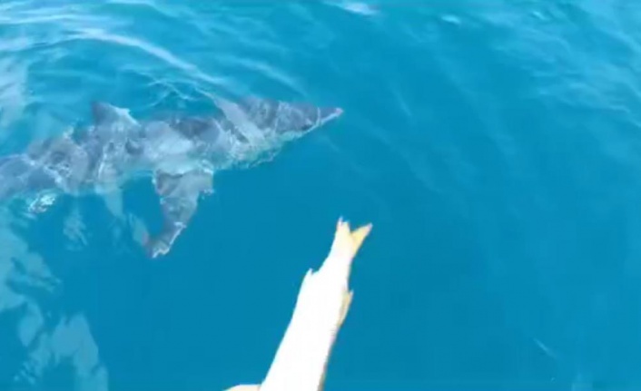 Antalya açıklarında bir balıkçının teknesinin etrafında uzun süre dolaşan köpekbalığı korku dolu dakikalar yaşattı. Balıkçı, zaman zaman teknenin motor kısmına ısırık atan köpekbalığına, ‘Hoşt, bir balık tutturmadı manyak' diyerek tepki gösterdi.