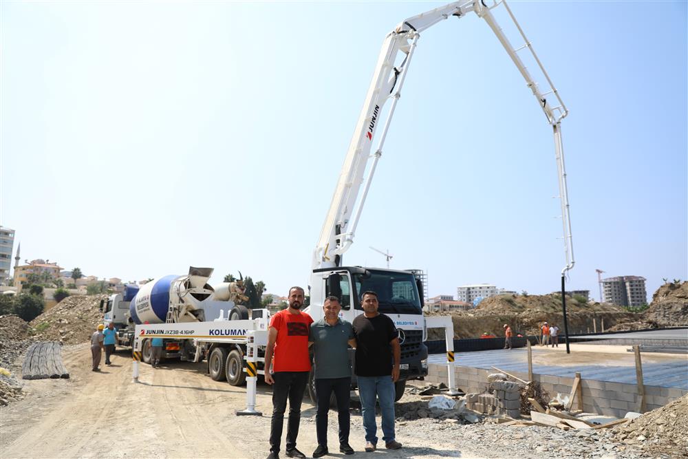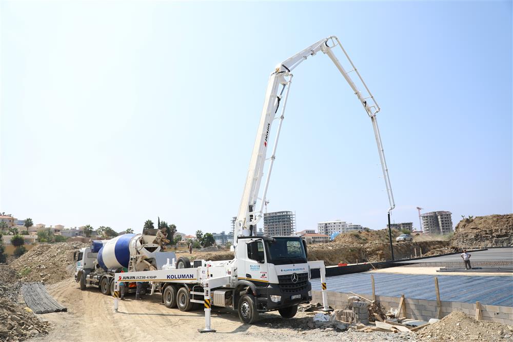 Alanya Belediye Başkanı Adem Murat Yücel’in Mahmutlar ve çevresine kazandırmak için kolları sıvadığı Mahmutlar Kültür Merkezi’nde bugün ilk beton döküldü. Bohçalama izolasyon çalışmaları tamamlanan dev tesisin bugün ilk beton döküldü. Ekiplerin hummalı bir şekilde çalıştığı ve kısa sürede büyük ilerleme kaydedilen inşaat alanına giden Başkan Yücel, ilk beton dökümü için düğmeye bastı. Yaklaşık 10 bin metrekarelik bir alana kurulan Mahmutlar Kültür Merkezi beton dökümünün ardından hızla yükselecek.