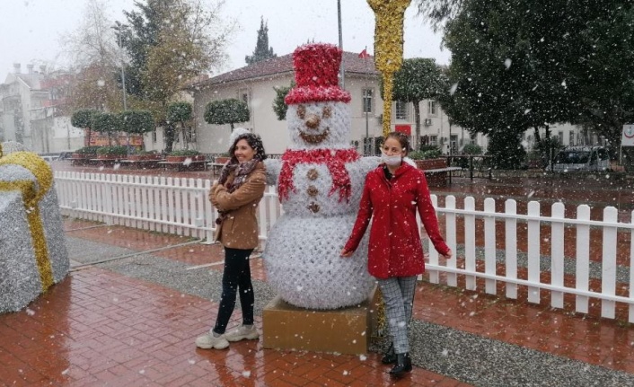 Manavgat'a 14 yıl sonra yağan kar vatandaşları şaşırttı.