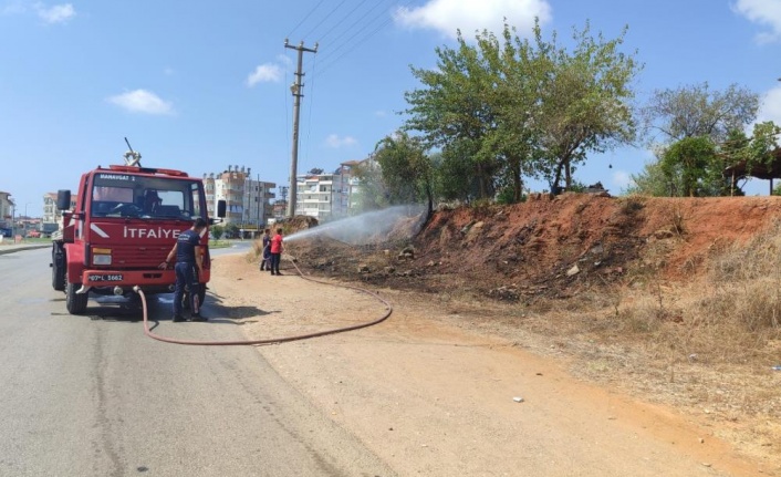 Manavgat'ta ot ve makilik yangını büyümeden söndürüldü
