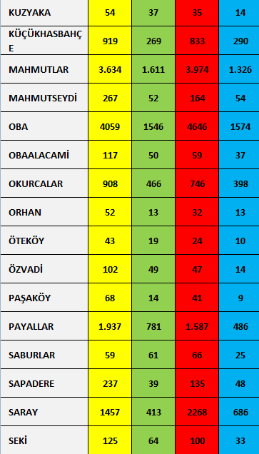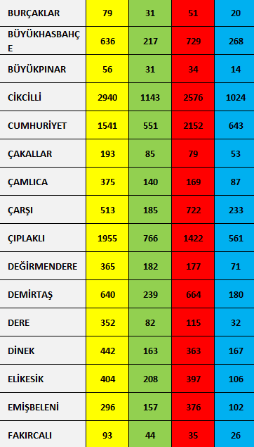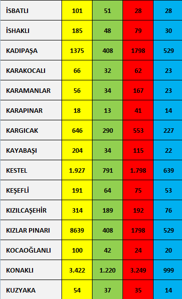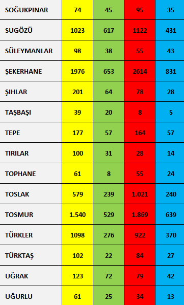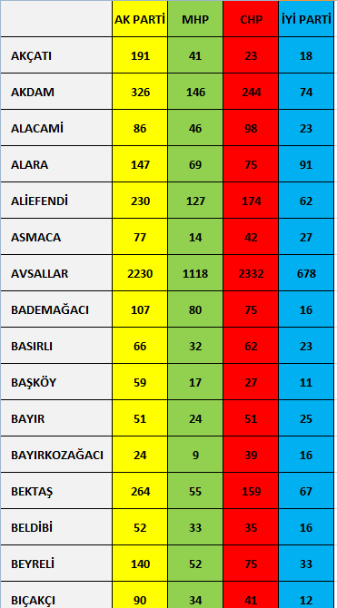 İşte mahale mahalle 28. Dönem Milletvekili seçimi oylama sonuçları;