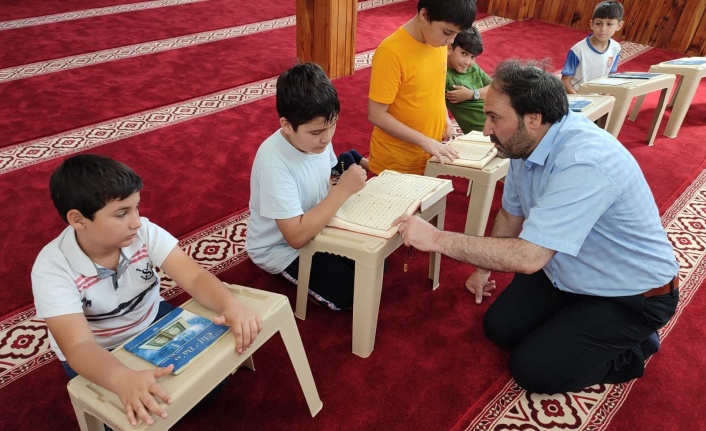 Alanya Müftülüğü’ne bağlı cami ve Kur’an kurslarında 27 Haziran Pazartesi günü itibariyle başlayan yaz Kur'an kursları devam ediyor. Her sene okulların tatil olduğu dönemde milyonlarca çocuk ve gencin Kur'an-ı Kerim başta olmak üzere İslam'ın temel inanç esaslarını, ibadetleri ve Hz. Peygamber'in hayatını öğrendiği yaz Kur'an kursları dokuz günlük kurban bayramı tatilinin ardından kaldığı yerden devam ediyor. Alanya Müftüsü Dr. İhsan İlhan bu kapsamda Çelikler Süleymaniye Camii, Bostancılar Camii, Yeşilöz Camii ve Uğrak Mahallesi Suçatı Camii’nde düzenlenen Yaz Kur’an Kursu’nu ziyaret ederek eğitim gören öğrencilerle bir araya geldi.