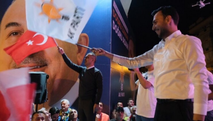 Dün gerçekleştirilen Cumhurbaşkanlığı 2’nci Tur seçimini Recep Tayyip Erdoğan kazandı. Seçimi Erdoğan’ın kazanmasının ardından çok sayıda partili Ak Parti’nin Alanya’daki seçim bürosu önünde meşaleler ve bayraklarla seçim sonucunu kutladı. Seçimi Erdoğan’ın kazanmasının ardından Ak Parti İlçe Başkanı Mustafa Toklu seçim bürosuna geldi. Sahneye Ak Parti Antalya Milletvekili Adayı Kuddusi Müftüoğlu ve eşi Paulina Müftüoğlu ve Kadın Kolları Başkanı Gülay Güvenç ile birlikte çıkan Toklu, bayrak sallayarak kalabalığın coşkusuna ortak oldu.