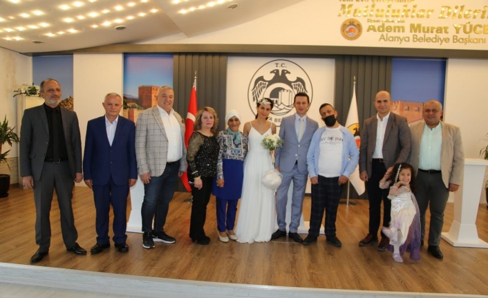 Durmuşali Sercan ve Gülten Sercanın kızları şehidimiz polis Abdullah Ümit Sercanın kızkardeşi mühendis melis Sercan ile maliye müfettişi Şükrü Akkocanın nikah töreni Aanya nikah salonunda gerçekleşti.. ALTSO Başkanı Şahin, “Aziz şehidimiz Abdullah Ümit Sercan’ın kız kardeşi Elif kardeşimizin nikahına Alanya Bakkallar Odası Başkanı Veliddin Yenialp ile birlikte katılmaktan onur duyduk. Hem Elif hem de eşi Mehmet Şükrü Akkoca kardeşlerimizi Allah mesut etsin İnşallah. Bir ömür boyu mutluluklar dilerim. Şehidimizin ruhu şad olsun” dedi. Alanya Belediyesi Nikah Dairesi’nde kıyılan nikah törenine Alanya Emniyet Müdürü Murat Kenan Patat da katıldı.