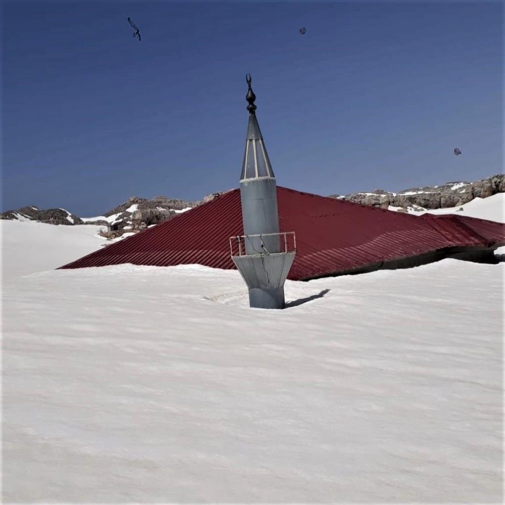 Ortaya ilginç görüntüler çıktı. Fotoğraflarda özellikle yaylada bulunan cami dikkat çekti. Anadolu Selçuklu Sultanı Alaattin Keykubat’ın Alanya Fethine giderken cuma namazı kıldığı rivayet edilen ve 1990 yılında yaylada bulunan vatandaşlar tarafından restore edilerek yeniden yapılan caminin büyük bölümünün kar altında kaldığı görüldü. Caminin kar olmadan çekilen fotoğrafları ile karlı çekilen fotoğrafları dikkat çekti.
