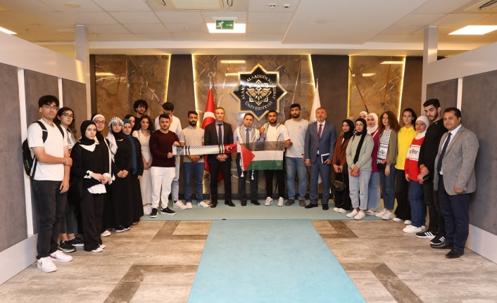 ALKÜ’de öğrenim gören Filistinli öğrencilerle buluşan Rektör Prof. Dr. Kenan Ahmet Türkdoğan, destek vermeye hazır olduklarını belirterek “Türk halkı olarak her zaman Filistinlilerin yanındayız. ALKÜ olarak da burada öğrenim gören öğrencilerimizin tüm sorunlarında yanlarında olmak isteriz. Sizler burada en iyi şekilde öğrenim görerek Filistin’in kurtuluşuna vesile olacaksınız. Bu yüzden en önemli savaşı da sizler veriyorsunuz. Filistin’in İsrail zulmünden kurtulması için en ağır yük sizlerin omuzlarında. Filistinli öğrencilerimizin bu ağır yükünü hep birlikte paylaşmak bizler için büyük bir onurdur. Filistin’deki bu zulüm hepimizi derinden etkilese de sizlerin gözünde gördüğümüz bu azimli parıltı, güzel günlerin çok uzakta olmadığını anlatıyor. ALKÜ’de gördüğünüz öğrenimle ülkenize en iyi hizmeti yapacağınıza inancım tamdır. ALKÜ ailesi olarak sizlerin her zaman yanındayız.” dedi.