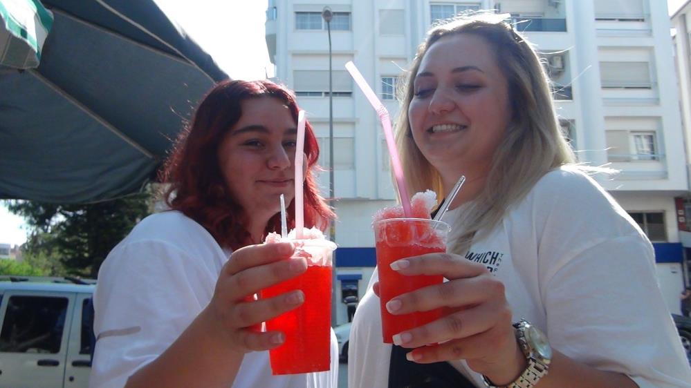 Üzerine eklenen özel şerbetle "karlama" adı verilen bu serinletici lezzeti bilenler de soluğu tezgâhın yanında alıyor.