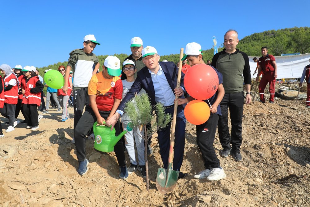 Konuşmanın ardından Kaymakam Ürkmezer; Belediye Başkan Vekili Fevzi Alaettinoğlu, Başsavcı Celal Tekin, Kurum Amirleri, Demirtaş İlk-Ortaokulu öğrencileri ve vatandaşlarla birlikte; Keçiboynuzu ve Fıstık Çamı türlerinden toplam 3450 adet fidanı toprakla buluşturdular.