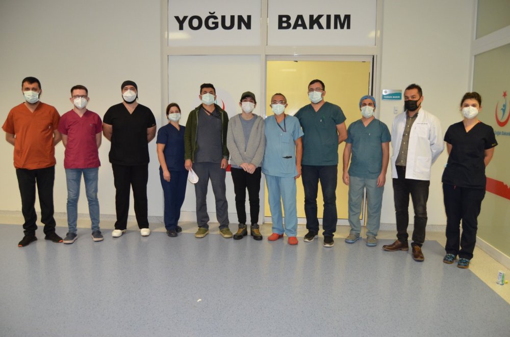Salgına karşı mücadelelerinin devam ettiğini söyleyen Yoğun Bakım Uzmanı Dr. Uğur Altun konuşmasına şu şekilde devam etti. “ Biz hekimlerin ve sağlık çalışanlarının salgınla mücadelesi devam ediyor. Hastalarımızı kurtarmak için insanüstü bir gayret gösteriyoruz. Hastam Mustafa Yılmaz ilk geldiği dönemde covid pozitif ve hiç aşısı olmayan bir hastamdı. Çok kötü bir durumdaydı. 2. ve 3. basamak yoğun bakımda kendisini takip ettik. 52 gün boyunca ölümün kenarında dolaşan Mustafa’yı bugünlere getirdik. Çok zor günler geçirdi. Mustafa’nın taburcu olmasına hepimiz çok sevindik. 52 gün süren savaşı kazanmış hastamızı hayata döndürmüştük. Yaşının genç olmasına rağmen aşısız olması dezavantajdı. Çünkü aşılı hastalarda covid enfeksiyonun daha hafif seyrettiğini görüyoruz. Bu yüzden bütün aşı olmayan ve aşılarını tamamlamamış vatandaşlarımıza aşı olmalarını ve aşılarını tamamlamalarını öneririm” diye konuştu.