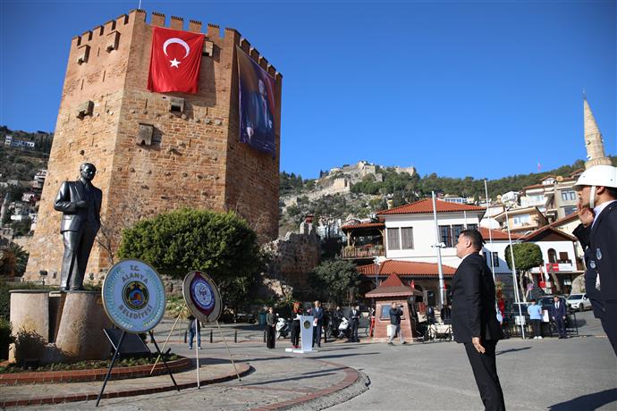 Mustafa Kemal Atatürk’ün Alanya’ya gelişinin 88. yıldönümü, İskele’de bulunan Atatürk Anıtı önünde törenle kutlandı.