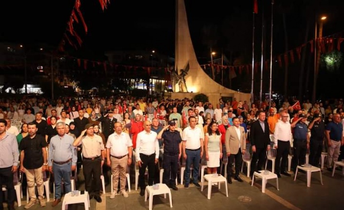 15 Temmuz Demokrasi ve Milli Birlik Günü Alanya’da gerçekleştirilen programla anıldı. Programda konuşan Alanya Belediye Başkanı Adem Murat Yücel, “Allah bu millete bir daha İstiklal Marşı yazdırmasın ve Yüce Allah o kara günleri bizlere bir daha yaşatmasın.” dedi.