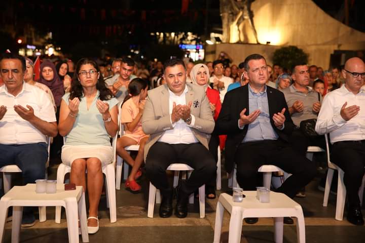 Sizlerin huzurunda 15 Temmuz’da ve geçmişten bugüne vatanı için canlarını feda eden tüm şehitlerimize Allah’tan rahmet, şehit yakınlarına ve Yüce Türk Milleti’ne başsağlığı diliyorum. Kahraman gazilerimize sağlıklı ve huzurlu bir hayat, tedavisi devam eden yaralılarımıza acil şifalar temenni ediyorum. Ayrıca Alanyalı şehitlerimizi, geçtiğimiz günlerde sonsuzluğa uğurladığımız hemşehrimiz şehit Piyade Uzman Çavuş Alpay Aras’ı rahmet ve minnetle bir kez daha anıyorum. Mehmet Akif Ersoy’un dediği gibi, “Allah bu millete bir daha İstiklal Marşı yazdırmasın” ve Yüce Allah, o kara günleri bizlere bir daha yaşatmasın.” dedi.