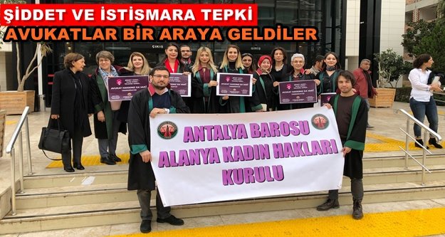 Antalya Barosu’na bağlı Alanya’da görev yapan avukatlar ile Alanya Kadın Hakları Kurulu üyeleri '8 Mart Dünya Kadınlar Günü' nedeniyle ellerinde kadına şiddete karşı yazıların bulunduğu pankartlarla Alanya Adliyesi önünde toplandı. Grup adına açıklama yapan avukat Aysun Tok, kadına yönelik ayrımcılığı, dünyada sömürünün, şiddetin, eşitsizliğin, yoksulluğun artmasına neden olan sistemden ayrı düşünmek mümkün olmadığını söyledi. Tok, "Bu nedenle temel olarak bu sistemin değişmesi sağlanmadan kadın sorunlarına çözüm bulmak mümkün olmayacaktır. Cinsiyet ayrımın ortadan kaldırılmasıyla özgür, eşit bir birey ve toplum oluşumu sağlanabilir. Antalya Barosu Alanya Kadın Hakları ve Toplumsal Cinsiyet Eşitliği Kurulu olarak kadınlarımızın cumhuriyet devrimleri kazanımlarından ödün vermeyeceğiz. Kadına karşı her türlü ayırımcılığın ortadan kalktığı, kadının birey olarak var olduğu, özgürlüklerin kısıtlanmadığı, şiddetin ve istismarın önlendiği, barışın sağlandığı bir Türkiye ve dünya istediğimizi bir kez daha kamuoyuyla paylaşıyoruz.” dedi.