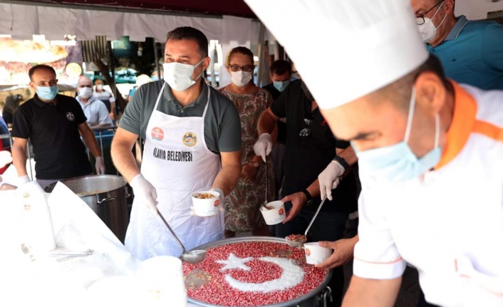 Alanya Belediyesi geleneksel hale getirdiği bolluk ve bereketin simgesi aşure dağıtımını bu yıl da gerçekleştirdi. Alanya Belediye Başkanı Adem Murat Yücel’e aşure dağıtım programında Ülkü Ocakları Başkanı Yavuz Uysal ve Pazarcılar Odası Başkanı Hasan Yiğit de eşlik etti. Cuma Pazarı girişinde kurulan alanda, 3 bin kişi için hazırlanan aşureler, 09.30’dan itibaren vatandaşlara ikram edildi.