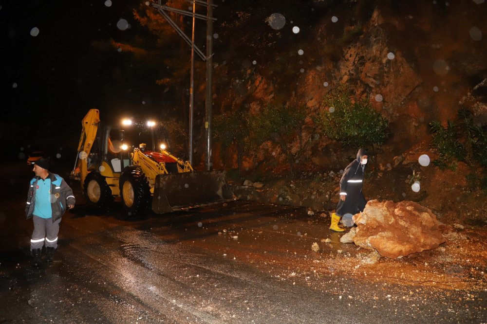 Yağışın etkisiyle Alanya Kalesi güzergahında yerinden kopan bir kaya parçasının yola düştüğü ihbarı üzerine bölgeye hareket eden ekipler, yolu kısa süreliğine trafiğe kapatarak kopan kaya parçasını iş makineleri aracılığıyla kaldırdı. Bölgede yaşanabilecek olumsuzluklara karşı güvenlik önlemleri alındı.