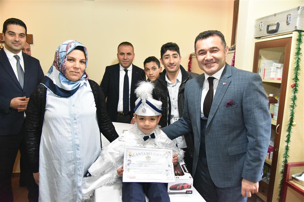 Alanya Belediyesi’nin geleneksel sünnet programı Tevfik Hoca Evi Polikliniği’nde devam ediyor. Alanya Belediye Sağlık ekipleri ve Uzman ekipler tarafından hafta içinde gruplar halinde yapılacak sünnet programı bugün başladı. Alanya Belediyesinin Sosyal Belediyecilik politikası çerçevesinde vatandaşlarında taleplerinin devamı üzerine geleneksel sünnet programları devam ettiriliyor. Alanya Belediyesi Tevfik Hoca Polikliniği’nde düzenlenen sünnet organizasyonuna Alanya Belediye Başkanı Adem Murat Yücel, Belediye Başkan Yardımcısı Nazmi Yüksel, Meclis Üyesi Tunahan Kasapoğlu, Sosyal İşler Müdürü Bilal Nurgül, aileler ve çocukları katıldı. Alanya Belediyesi sağlık ekiplerinin çocukların iyileşme süreçlerini de düşünerek yarıyıl tatiline denk getirildi. Belediye’ye başvurarak kayıt yaptıran ailelerin gelmesiyle birlikte sünnet programı dua töreni ile başladı. Aileler ve çocuklar Tevfik Hoca Evi Polikliniğinde uzman sağlık personelleri tarafından hijyenik ortamda gerçekleştirilen sünnet hizmetinden sırayla yararlandı.
