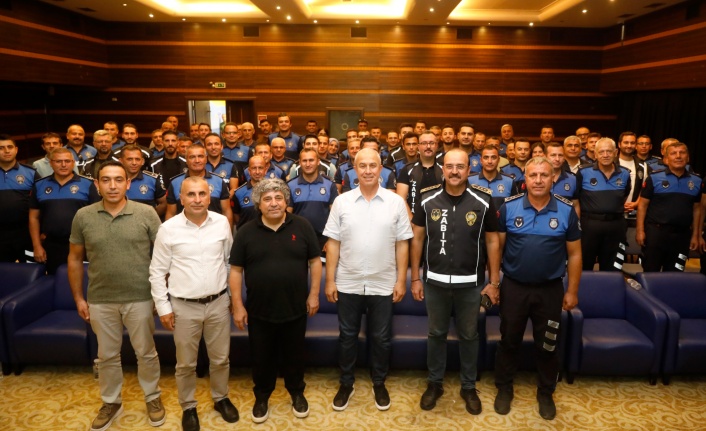 Alanya Belediye Başkanı Osman Tarık Özçelik, zabıta personelinin eğitim seminerine katıldı. Zabıtalara tavsiye ve uyarılarda bulunan Başkan Özçelik, “Sizlerden halkımıza karşı saygı, sevgi ve ciddiyet bekliyoruz. Çünkü siz Alanya Belediyesi’nin güler yüzü olmalısınız” dedi.