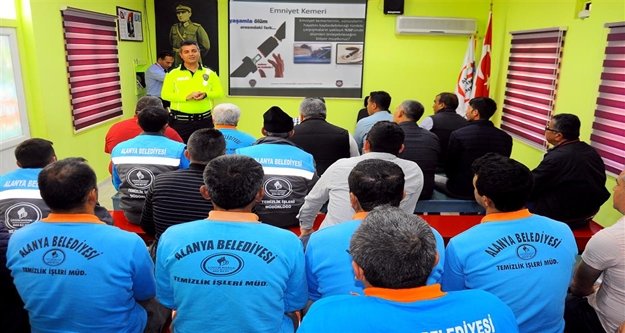 Alanya Belediyesi ve Alanya İlçe Emniyet Müdürlüğü, Alanya Trafik Eğitim Derneği işbirliğinde, Alanya Belediyesi Temizlik İşleri Müdürlüğü’nde görevli araç kullanan personellere Alanya Belediyesi Trafik Eğitim Parkı personelleri ve uzman polis ekiplerince “Trafikte Saygı Hayata Saygı” konulu eğitim verildi. 22-23-24 Nisan tarihleri arasında verilen eğitimlerle personellerin trafik konusunda bilinci arttırılması hedeflendi. 3 gün boyunca süren eğitimlere toplamda 122 personel katıldı. Eğitimlerin sona ermesinin ardından Alanya Belediye Başkan Yardımcısı Ali Yenialp, Alanya İlçe Emniyet Müdürü Alper Avcı, Alanya Belediyesi Temizlik İşleri Müdürü Adem Demir ve Trafik Eğitim Derneği Başkanı Bilge Toksöz tarafından katılımcılara sertifikaları verildi.