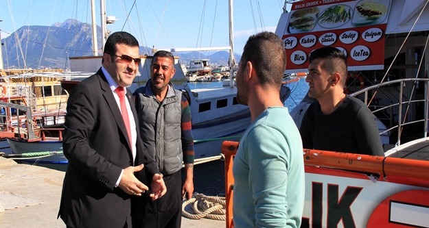 Alanya Kaymakamı Dr. Hasan Tanrıseven, rıhtımdaki tur teknelerinin sahiplerini ve esnaflarını ziyareti esnasında, yeni turizm sezonuna hazır olup olmadıklarını sordu.