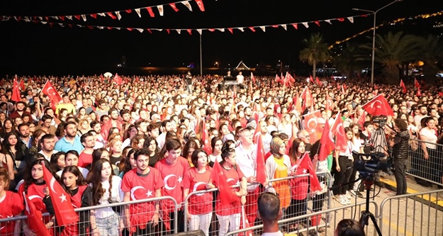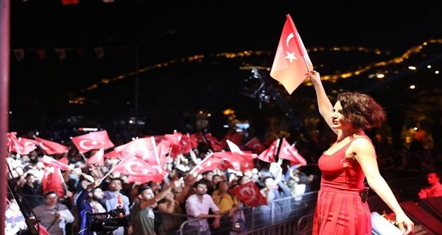 Konuşmaların ardından sahneye çıkan Göksel “Bu da Geçecek” adlı eseriyle başlangıç yaptı. Şarkının ardından Başkan Yücel, Göksel’e çiçek ve plaket takdim edip katılımı nedeniyle teşekkür etti. Göksel en sevilen şarkılarını Alanyalılar için seslendirirken konser alanını dolduran binlerce vatandaş, Türk Bayraklarıyla alanı adeta şölen havasına çevirdi. Konser sonunda ise gece atılan havai fişeklerle aydınlandı.