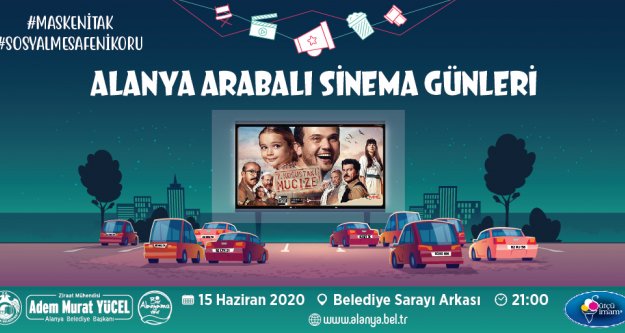 Alanya Belediyesi, korona virüs salgınında normalleşme sürecinde ‘Arabalı Sinema’ etkinliği başlattı.