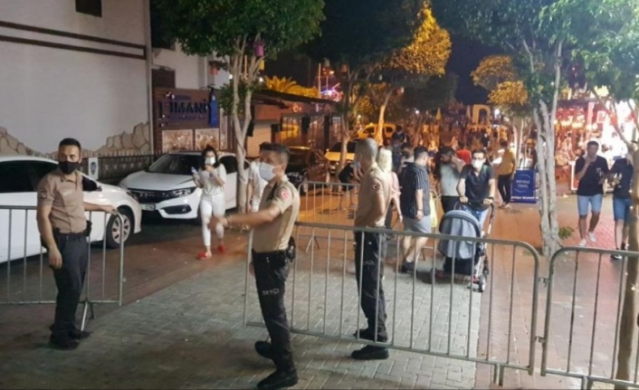 13 ayrı noktada bariyer kuran emniyet güçleri vatandaşların çarşı ve barlar bölgesine girişini yasakladı. Bariyerlere gelen turistler emniyet güçleri tarafından maske takmaları konusunda uyarıldı. Maskesi olanlar çarşı ve barlar bölgesine alınırken maskesiz turistler geri gönderildi