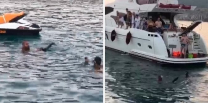 Görüntüyü çeken vatandaşların , “Çok yazık” dediği, tekne içinde bulunan vatandaşların da o anları kayda aldığı gözlendi.
