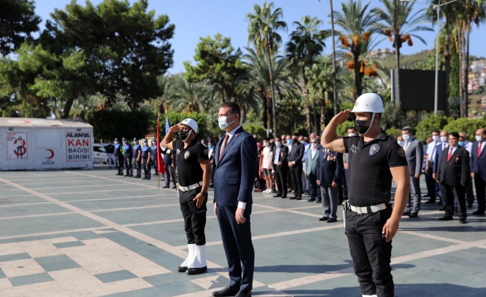 Hükümet Meydanı’ndaki Atatürk Anıtı önünde düzenlenen törene Alanya Kaymakamı Fatih Ürkmezer, Alanya Belediyesi Başkan Yardımcısı Ali Yenialp, Alanya Cumhuriyet Başsavcı Vekili Resul Yıldırım, Alanya İlçe Emniyet Müdürü Murat Kenan Patat, Alanya İlçe Jandarma Komutanı Yarbay Engin Burak Mindivanlı, idari birim amirleri, siyasiler ile gaziler ve onların yakınları katıldı.