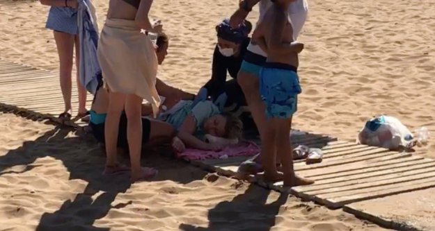 Alanya'da genç kadın plajda yere yığıldı