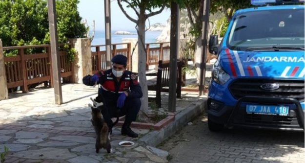 Sokağa çıkma kısıtlaması bulunan Antalya’nın Alanya ilçesinde jandarma ekipleri sokak hayvanlarını besledi.