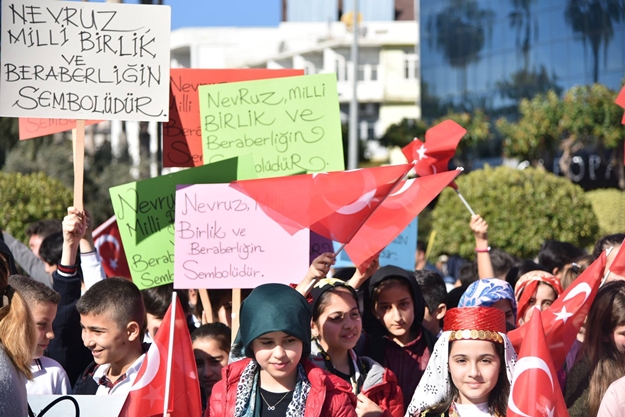 Alanya Kaymakamlığı öncülüğünde İlçe Milli Eğitim Müdürlüğü tarafından düzenlenen Nevruz Bayram'ı kutlamalarına saat 10.00'da Atatürk anıtı önünde başladı.
