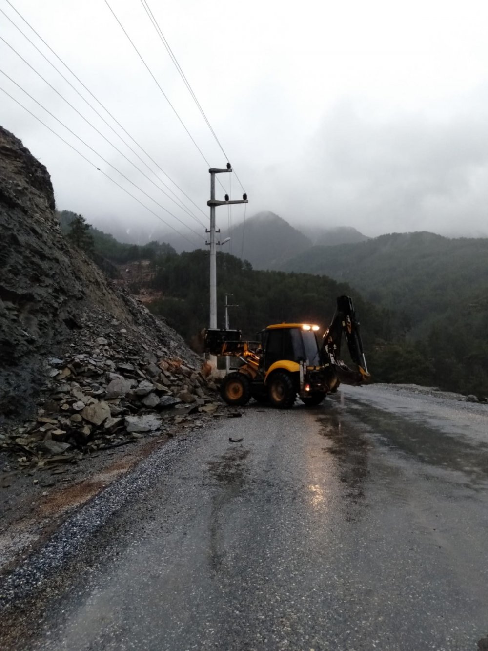 Öte yandan Beldibi Mahallesi grup yolunda da aşırı yağışlar sonrası kayalar yola döküldü. Kısa sürede bölgeye giden Büyükşehir ekipleri yoldaki kayaları kaldırırken, kayaların dökülme riskine karşı yol güvenlik amaçlı olarak trafiğe kapatıldı. Beldibi Mahallesi’ne gidecek olan vatandaşların Fakırcalı Mahallesi İnhisar Mevkii güzergahını kullanmaları gerekiyor. Yol trafiğe kapatılırken, Büyükşehir Belediyesi ekipleri çalışmalarına başladı çalışmalar yol güveliği sağlanıncaya kadar devam edecek.