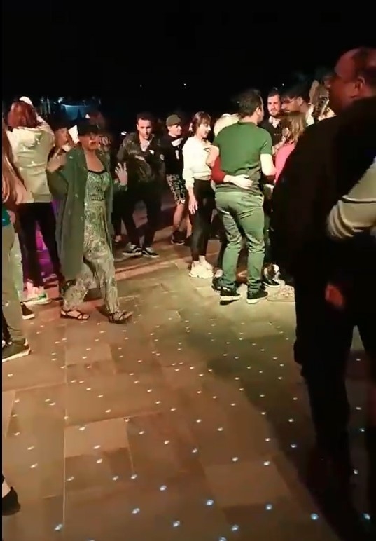 O anlar ise cep telefonu eğlenceye katılanların cep telefonları kameralarına yansıdı. Görüntülerde eğlence merkezi içerisinde müzik eşliğinde dans eden kalabalığın korona virüs tedbirlerine uymadıkları, sosyal mesafe ve maske kurallarının ise hiçe sayıldığı görüldü.