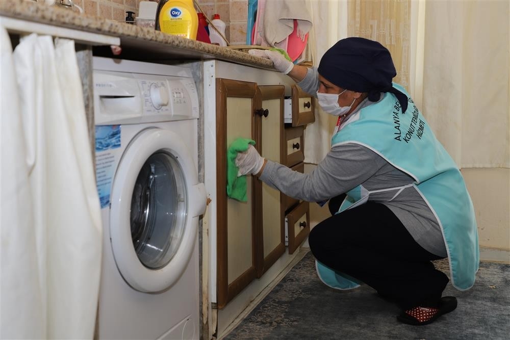 Alanya Belediyesi Sosyal İşler Müdürlüğü tarafından kurulan konut temizlik ekibinde dört kadın personel bulunuyor. Sadece evinde temizlik yapabilecek kimsesi olmayan engelli, yaşlı ve bakıma muhtaç vatandaşlara hizmet veren konut temizlik ekibi, Ramazan Bayramı öncesi 80 hanenin detaylı ev temizliğini yaptı.