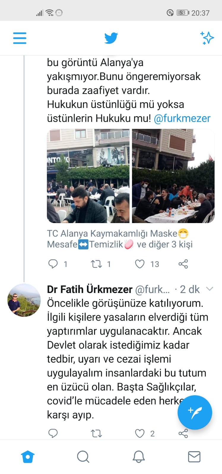 Konuyla ilgili tepkilere katıldığını belirten Ürkmezer, "İlgili kişilere yasaların elverdiği tüm yaptırımlar uygulanacaktır. Ancak Devlet olarak istediğimiz kadar tedbir, uyarı ve cezai işlemi uygulayalım insanlardaki bu tutum en üzücü olan. Başta Sağlıkçılar, covid’le mücadele eden herkese karşı ayıp" dedi.